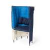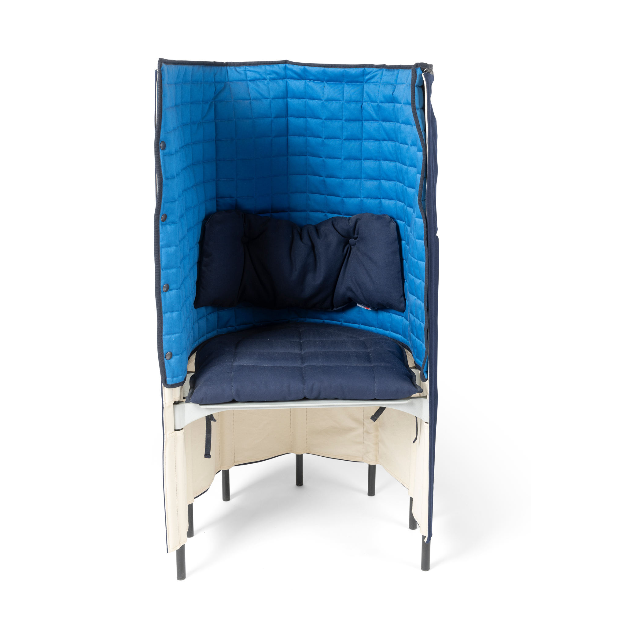 La sfogliata is a sweet made with puff pastry, rolled out thin and wrapped around a filling. In Gaetano Pesce's armchair, the "wrapper" is a shell, either in colourful, doubleply natural canvas, or transparent and translucent. Held up by seven fibreglass ribs, it is the framework and support for a firm seat. The optional padding is a simple cushion, quilted and with colourful contours, which is attached to the outer surface. The firm, sturdy seat holds the thirteen legs in thirteen grips, like closed fists, and is padded with springy, flexible, filaments - little fingers reaching out to gently embrace and cushion the person who is the filling of “la sfogliata”.