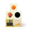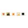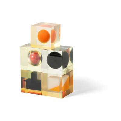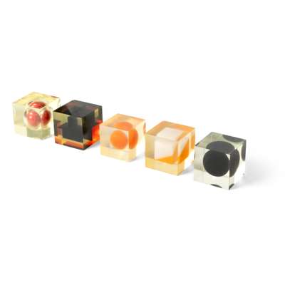 four examples: 7cm high, 7cm wide, 7cm deep (2 ¾in high, 2 ¾in wide, 2 ¾in deep); the orange ball example: 6.5cm high, 6.5cm wide, 6.5cm deep (2 5/8in high, 2 5/8in wide, 2 5/8in deep) (5)