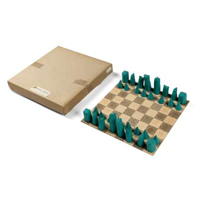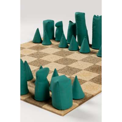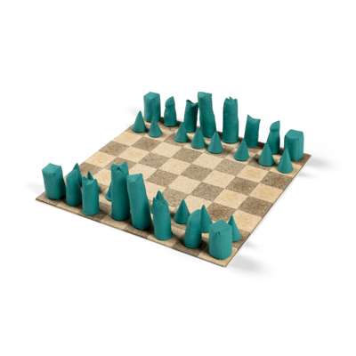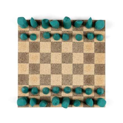 signed on base and numbered 14/40, dyed canvas pieces, filled with sand, on a cork board with aluminium base, from the edition of 40