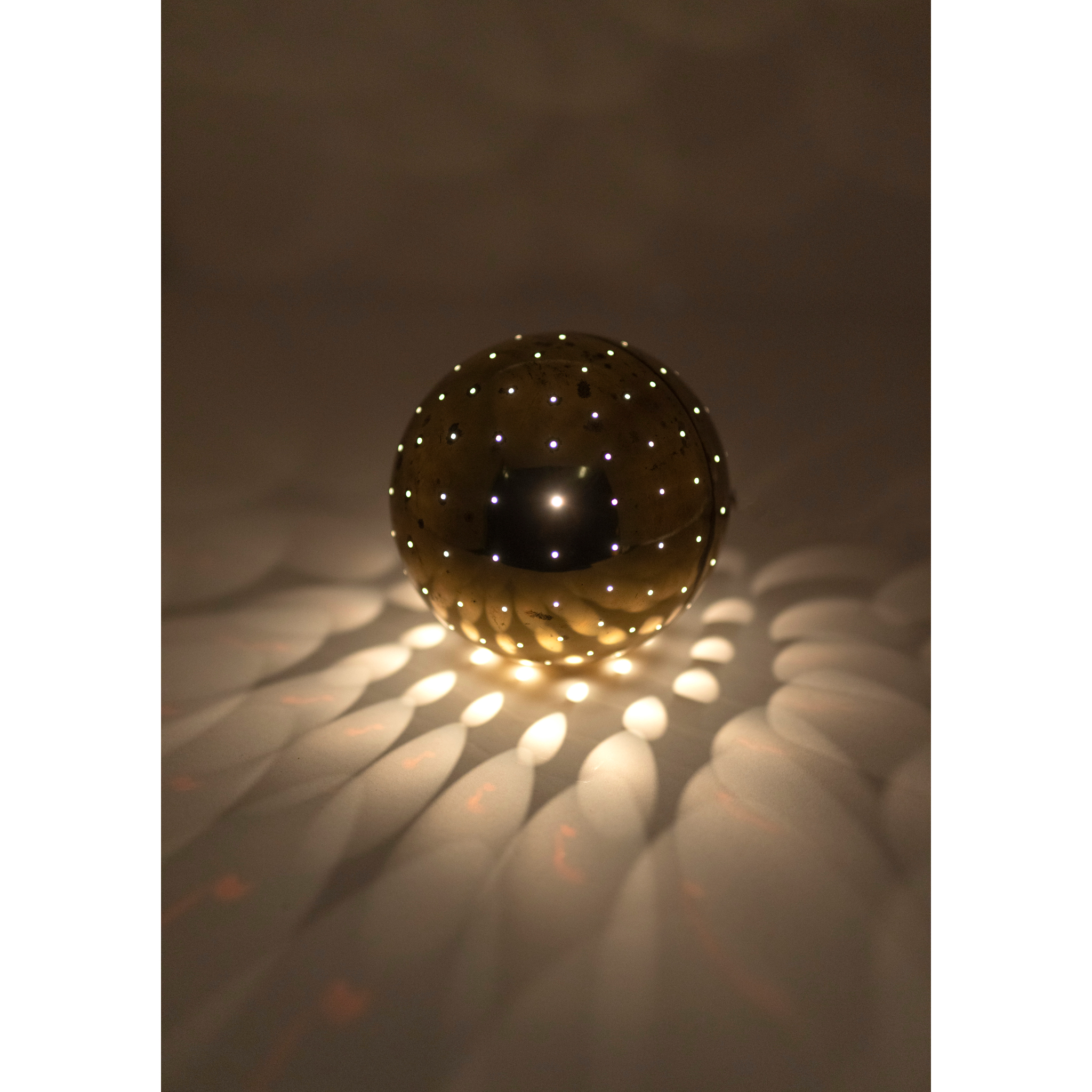 signed, dated and inscribed Artists Proof, metal with pin holes, internally fitted with bulb