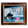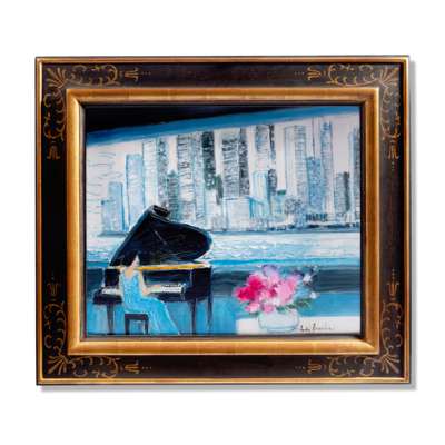 Rêverie Bleue and Pianiste à New York are painted in Brasilier’s signature soft tones, dominated by blue, which lends them a dreamlike quality and a sensual coolness. Blue was, of course, the colour beloved by Matisse, whose influence on Brasilier is clear and unabashed. He deliberately aims for the romanticism, the lightness of touch of Matisse’s later years on the Côte d’Azur, as well as some of the calme, luxe et volupté of the Post-Impressionists in general – although in Brasilier the luxe et volupté are held in check a little more. There is a quiet restraint to his romanticism, which finds expression in the thin, almost dry application of paint in a work such as Rêverie Bleue. Pianiste à New York has a heavier weighting of paint, a little more luxe appropriate to the energy of the city.