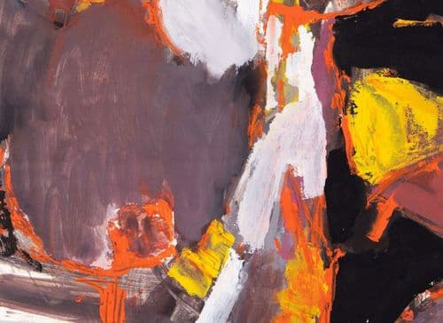 This striking, sweeping work by Adrian Heath marks a key moment in his career, as it was in 1960 that he definitively moved away from the tightly rendered geometry of his breakthrough works of the 1950s, towards a looser, more instinctual and gestural method of image-making. In the present work, especially in the use of black as the dominant colour, one thinks immediately of, say, Robert Motherwell and Franz Kline. This is certainly an ‘American’ painting in look and feel. Heath may have been a decade older than the likes of Robyn Denny, Richard Smith and Ralph Rumney, who are often seen as the earliest British artists to ‘adopt’ American Abstract Expressionism and the writings of Clement Greenberg, but the influence of the two major exhibitions of the new American painting at the Tate in London - in 1956 and 1959 - was always unlikely to pass by an artist as sophisticated as Heath, who had been up to date with anything and everything avant-garde in art since the 1940s.