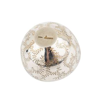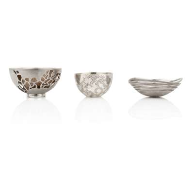 together with ANGUS MCFAYDEN, BOWL, maker's marks, hallmarked for Edinburgh, silver, engraved and with gilding, 3cm high, 5cm diameter (1 ¼in high, 2in diameter), 58 grams; and SARAH HUTCHISON, BOWL, 2006, maker's mark, hallmarked for London 2006, silver with cubic zirconia, 7cm diameter (2 ¾in diameter), 32.5 grams