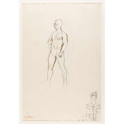 NUDE MALE MODEL WITH A VIGNETTE OF A LADY / NUDE FEMALE MODEL