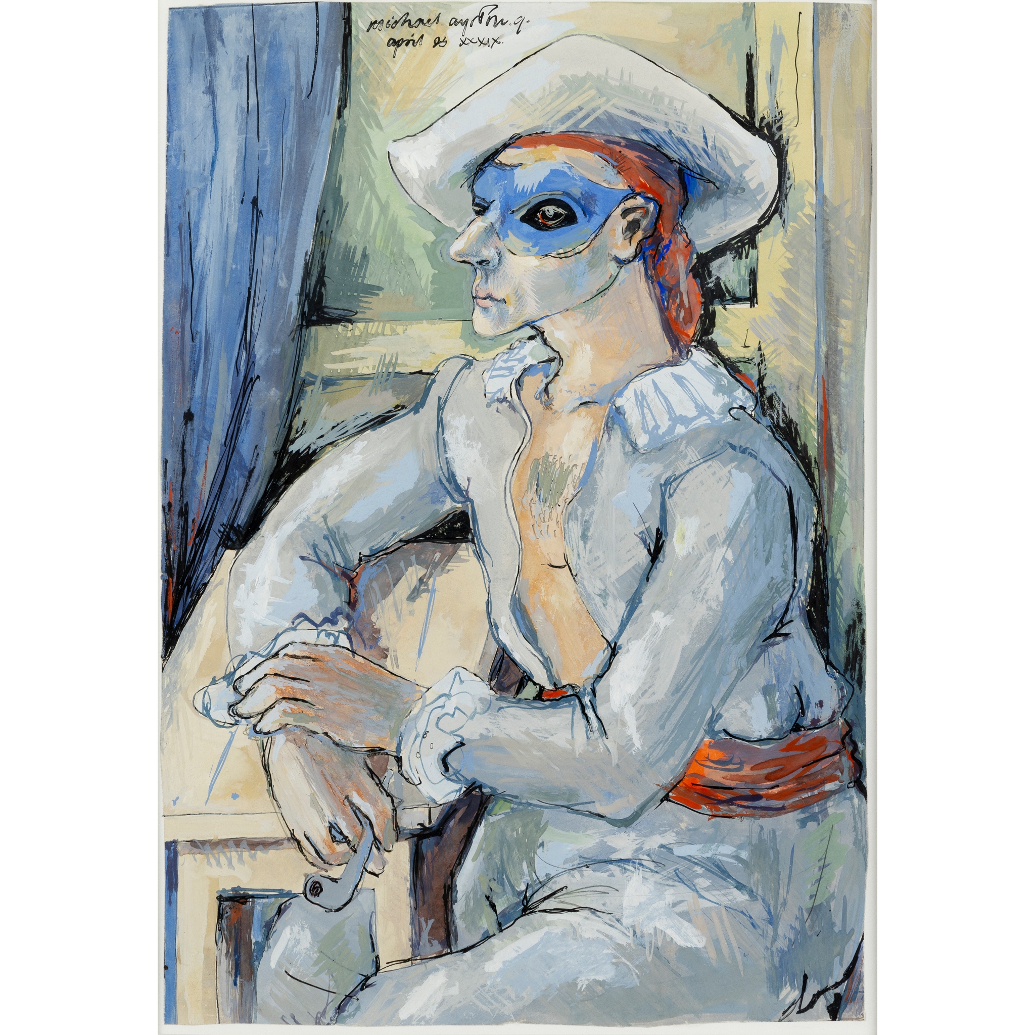 signed and dated April 23 XXXIX (upper centre), ink and gouache on paper laid on card