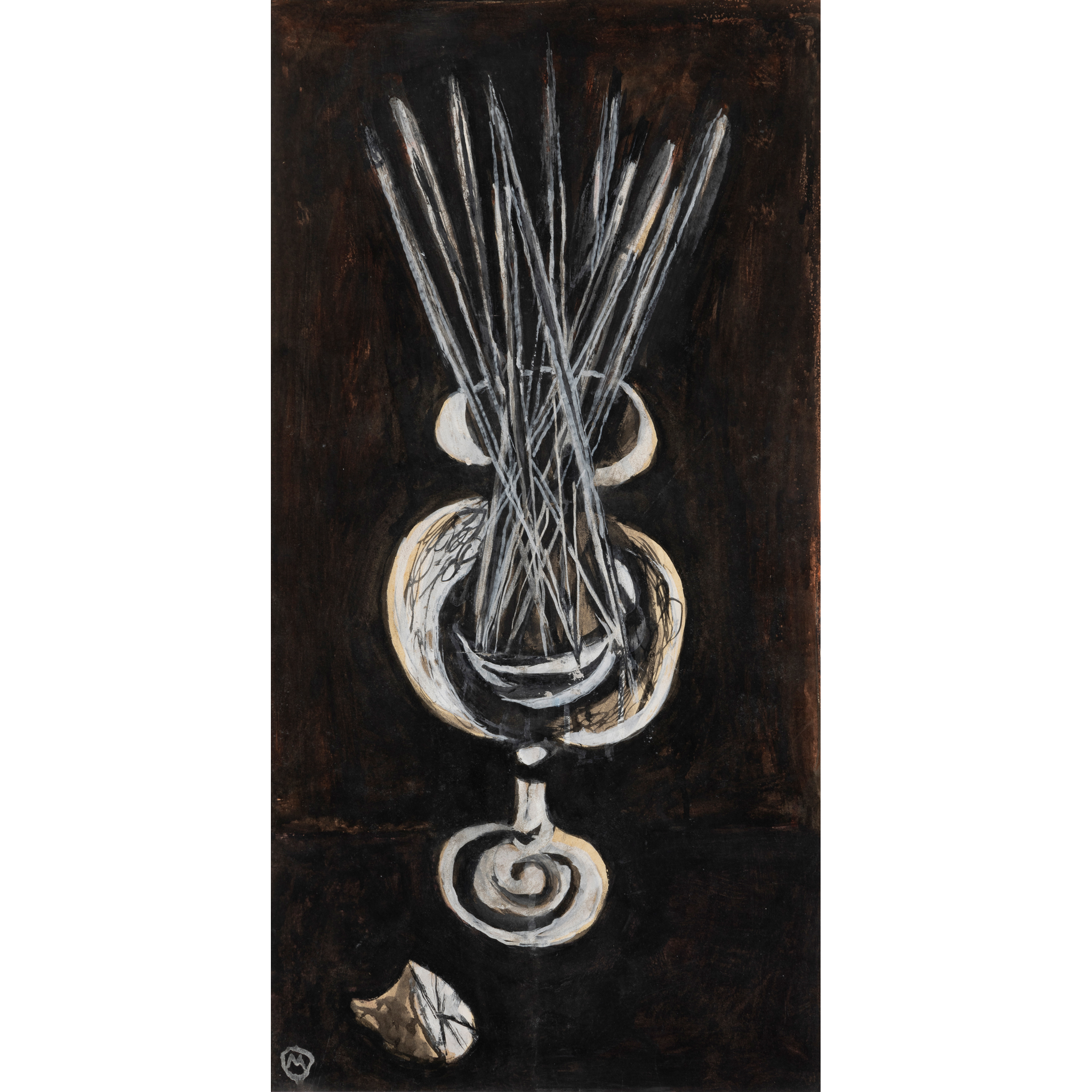 monogrammed (lower left), gouache on paper