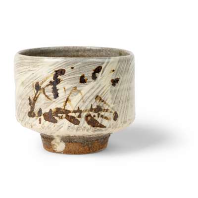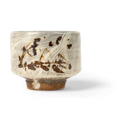 impressed maker's mark, stoneware, with brushed hakame glaze, and iron brush work foliate decoration