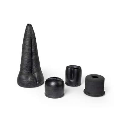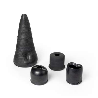 TALL VESSEL AND THREE ENCLOSED POTS