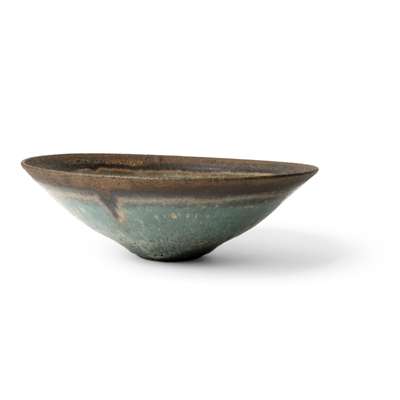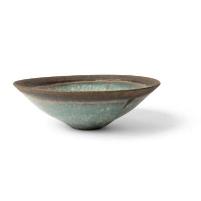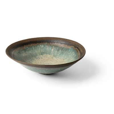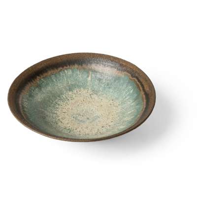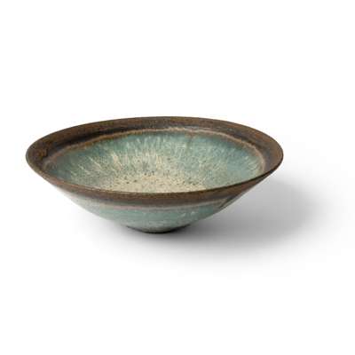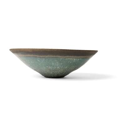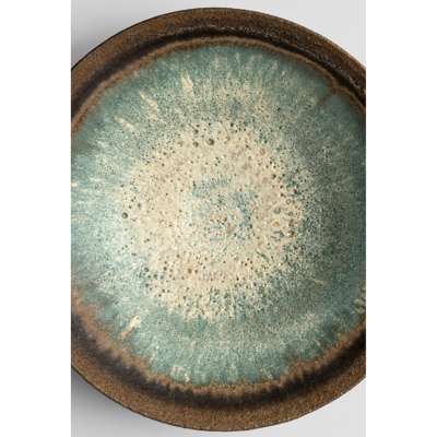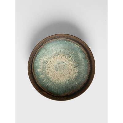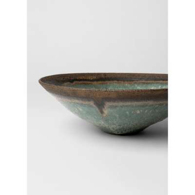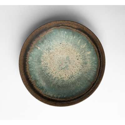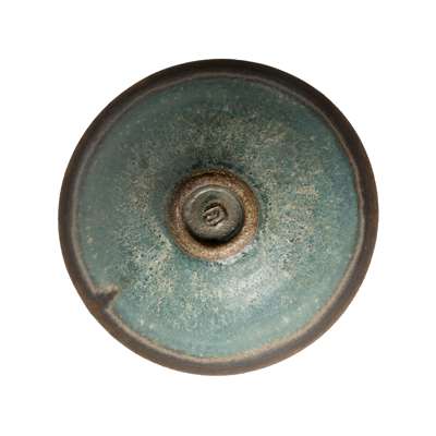 impressed maker's mark, stoneware, volcanic green glaze with manganese rim