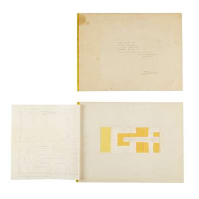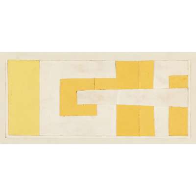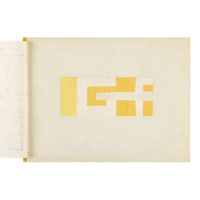 inscribed, signed and dated March 1955 in ink (to outside board), and inscribed MOSAIC DESIGN FOR PORCH STEP ON ENTRANCE PLATFORM OF GIMPEL FILS, 50 SOUTH MOLTON ST. W1 / TO BE CONSTRUCTED FROM 10MM (QUARTERED) TESSERAE IN PRCISE PROPORTIONS SPECIFICED HERE IN REFERENCE TO TO S.H.R.I.M CHART OF (20MM) TESSERAE SAMPLES (to inside of support board), collage, together with tracing paper design