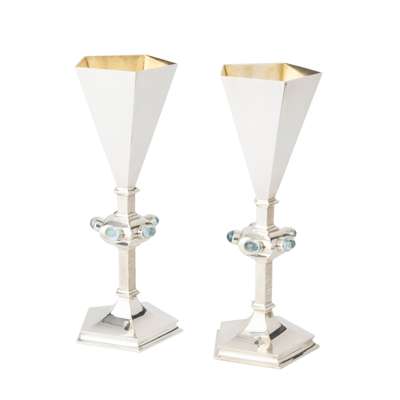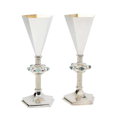 The goblets were marketed by Aurum to raise funds for the Fitzwilliam Museum. Jocelyn drew inspiration for the Fitzwilliam Cup from Anglo-Saxon chalices. “I liked the simple, elegant concept, which I felt captured the simplicity of the 1970s,” she explained, adding, “One of the things that has always made my work unusual is the use of semi-precious stones in large pieces of silver.”