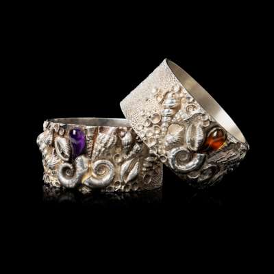 PAIR OF 'SHELL' NAPKIN RINGS, 1978-9