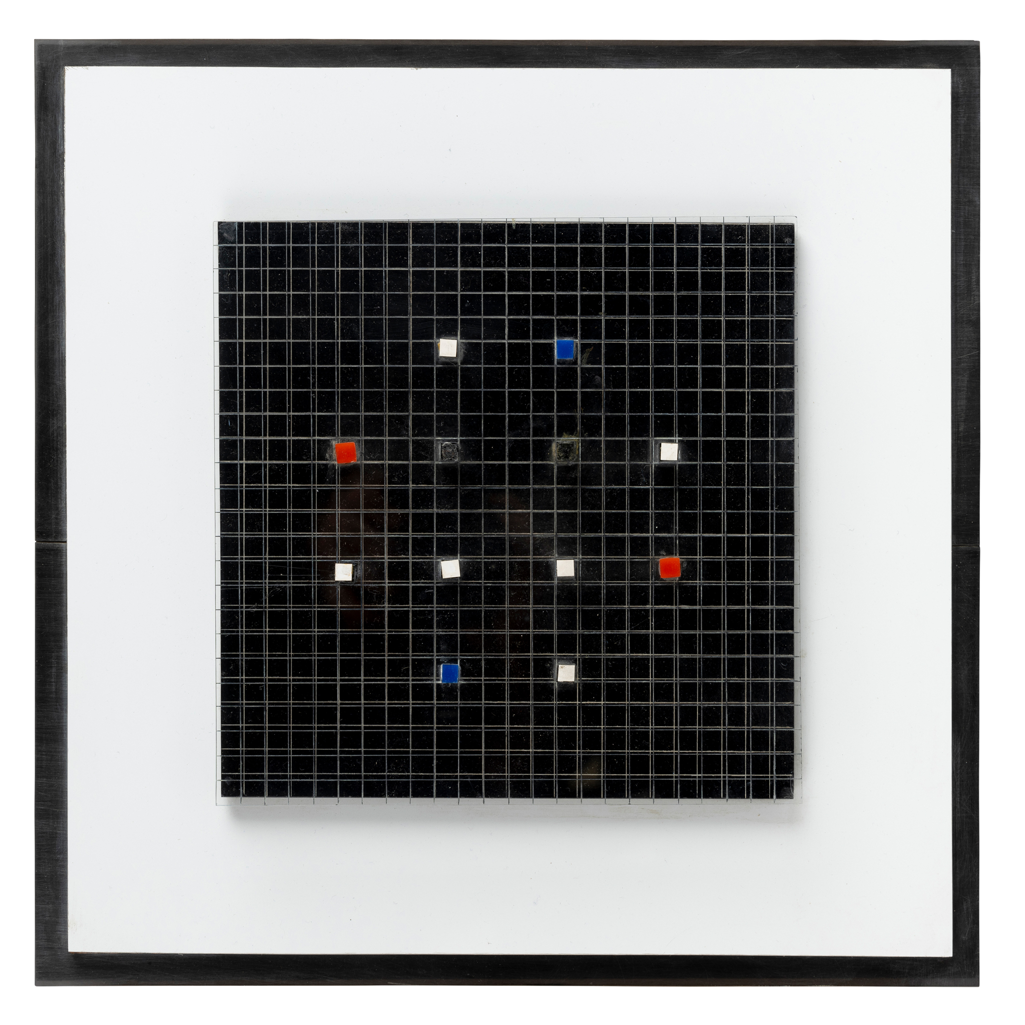 signed, monogrammed, titled and dated (to reverse), relief in plastics and metal