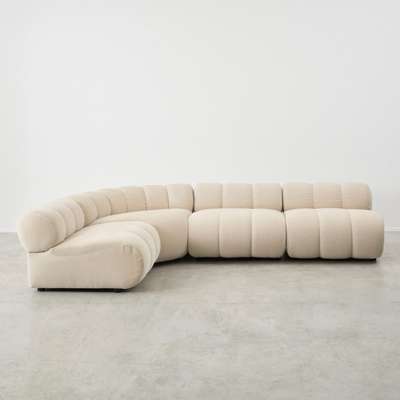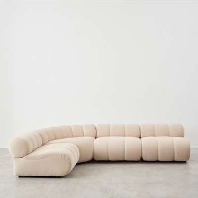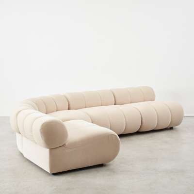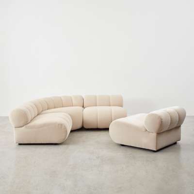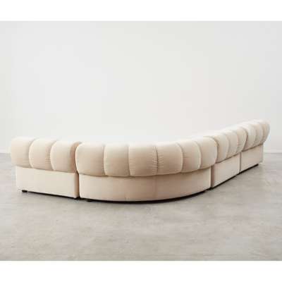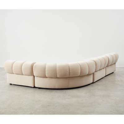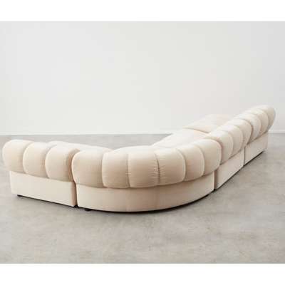 manufacturer's mark, upholstered in ivory mohair velvet, consisting of four modular elements