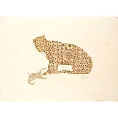 together with THE LEOPARD AND THE MONKEY (AESOP'S FABLES), 1944, signed in ink (lower right), inscribed A versatile mind is better than a variegated coat. Aesop in pencil (lower centre); further titled, dated and inscribed SASKATOON CITY in pencil (to reverse), ink and watercolour on paper, 37.5cm x 51cm (14 ¾in x 20in)