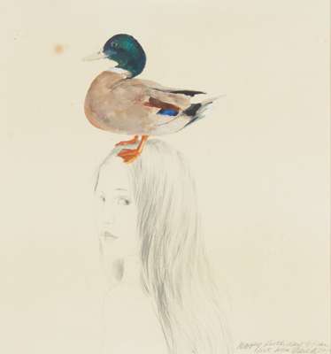 inscribed Happy Birthday Gillian love from David and Jack in pencil (lower right), watercolour and gouache