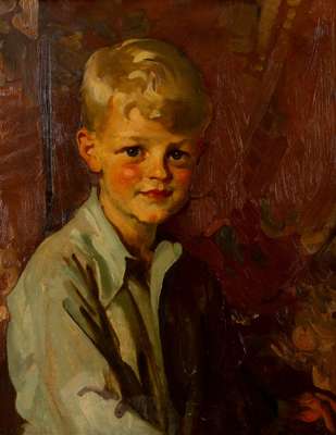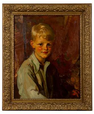 Jagger was widely recognised during the 1920s and 1930s for his portraits of children, frequently depicting fair-haired boys. Several large-scale commissions were produced for aristocratic and affluent patrons. The present painting is comparable to Brian (Bonhams, London, 22 November 2017, £18,750), sharing similar colouring of the hair and eyes, though the reversed hairline suggests an unidentified sitter.