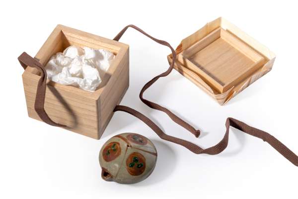 stoneware, in Okinawa style with enamel decoration in red and green, in fitted box