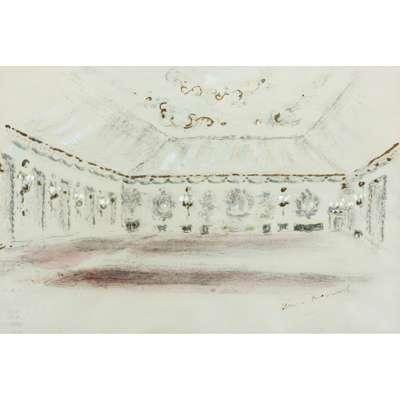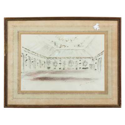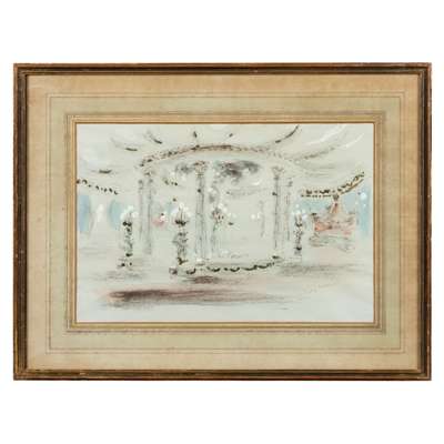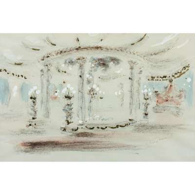 THREE SKETCHES FOR WEDDING DECORATIONS - A CIRCULAR TEMPLE OF TRESTLED COLUMNS; A SIMPLE LITTLE TENT; SKETCH FOR THE ANTE ROOM, 1952
