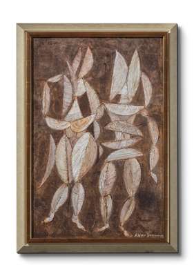 signed (lower right), oil on paper on board