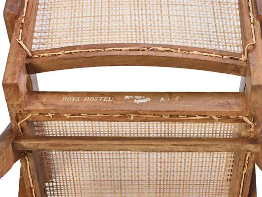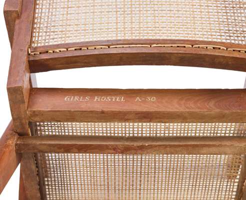inscribed GIRLS HOSTEL A30 and BOYS HOSTEL A1/I, teak, cane and upholstery