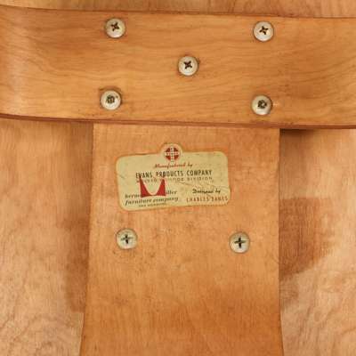 each labelled MANUFACTURED BY EVANS PRODUCTS COMPANY/ HERMAN MILLER FURNITURE COMPANY/ DESIGNED BY CHARLES EAMES, plywood