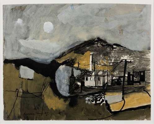 signed and dated (lower right), pen, ink, watercolour and gouache on paper