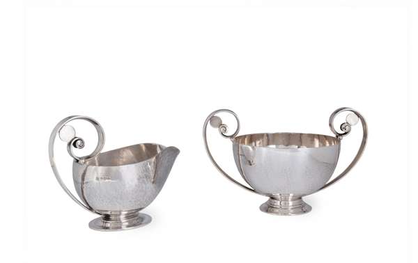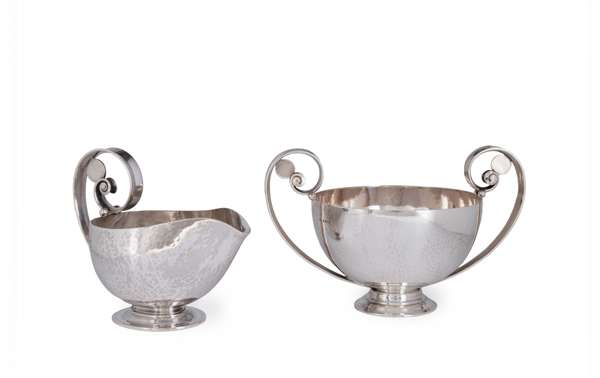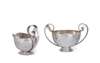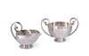 the sugar bowl: 10cm high, 16.5cm wide (4in high, 6 ½in wide); the cream jug: 10cm high, 13cm wide (4in high, 5 1/8in wide) (2)