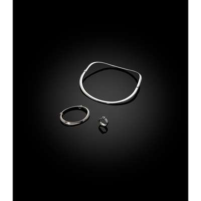 necklace internal width: 13.2cm (5 1/8in); bangle internal width: 5.8cm (2 ¼in); ring size: L ½ (3)