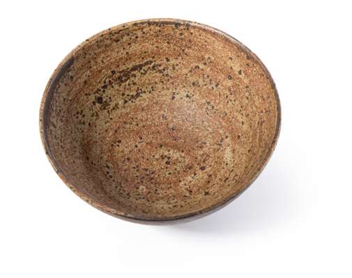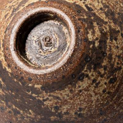 impressed maker's seal, stoneware, with mottled body and red/brown glaze