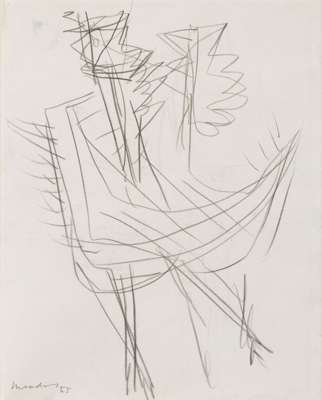 DOUBLE-SIDED DRAWING FOR SCULPTURE (COCKS), 1955
