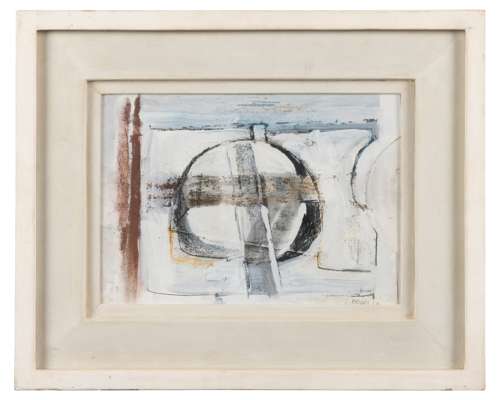 signed and dated (lower right), black crayon, gouache, collages and pastel