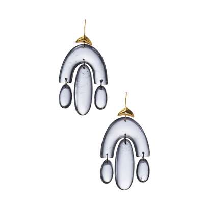 In recent years, Anderson and Rees’s search for unusual materials has led them beyond their own atelier, most notably to Jaipur. There, in collaboration with highly skilled stone carvers, they have extended their practice to include hand-carved gems. Working from the jewellers’ wax models, some entirely new and others drawn from their archive, the artisans employ traditional techniques passed down through generations. Rough stones are reimagined in this process — cut, carved, and polished into luminous forms that retain all the subtlety of the original designs. These singular carvings, with their careful balance of precision and irregularity, are destined to be assembled into earrings and necklaces that embody the pair’s idiosyncratic, modern vision of adornment.