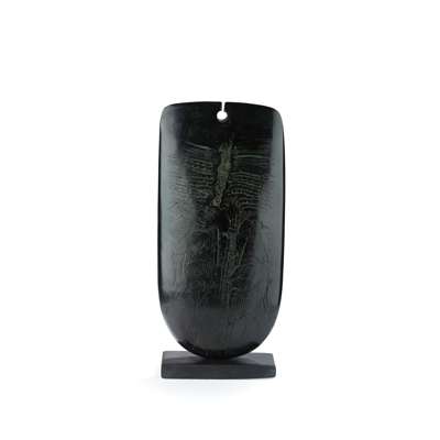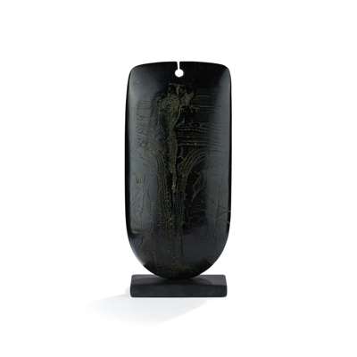 signed (to base), raku on slate base