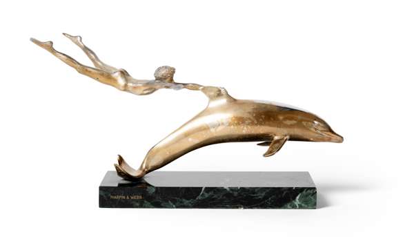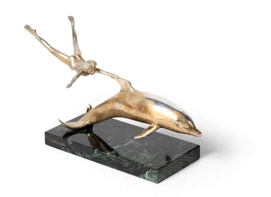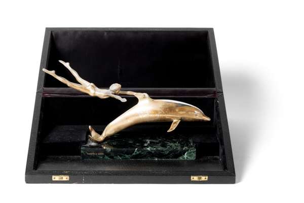 the marble stamped and numbered DAVID WYNNE 59/250 / MAPPIN & WEBB, stamped manufacturer's mark, hallmarked for London, silver on marble base, in fitted Mappin & Webb case