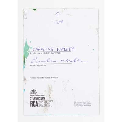 signed in pen (to reverse), acrylic on RCA supplied postcard, all unframed except one work by Peter Jones