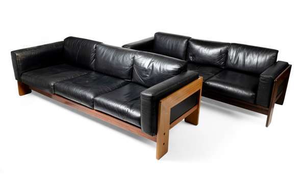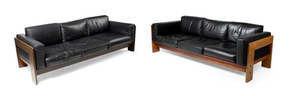 rosewood and leather, 69cm high, 210cm wide, 76cm deep, (27 1/8in high, 82 5/8in wide, 30in deep); together with another associated 'Bastiano’ sofa