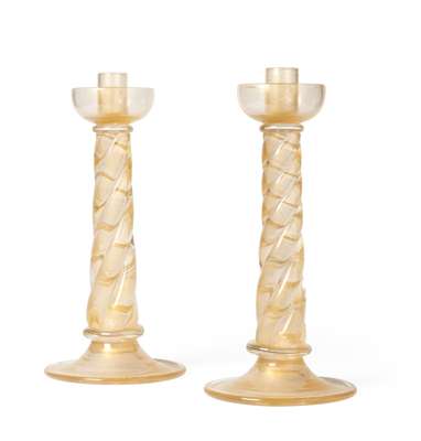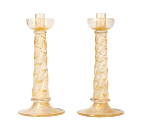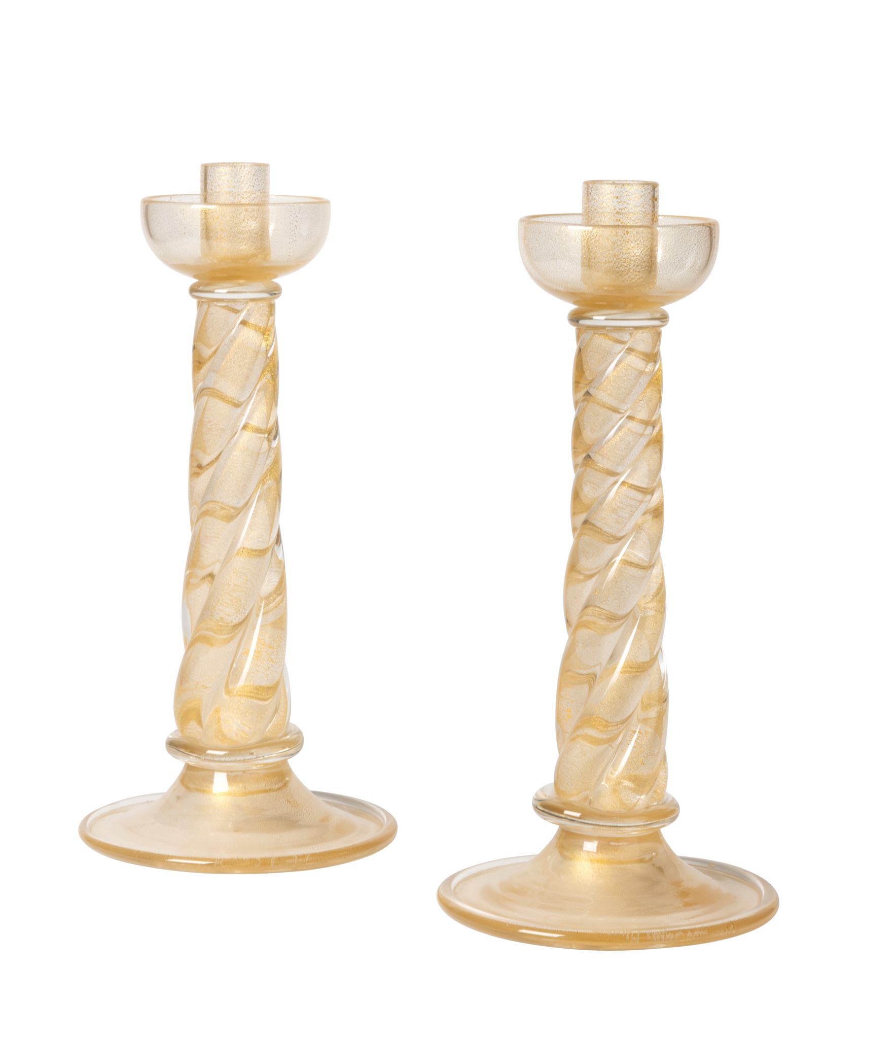 each inscribed Archimede Seguso Murano, glass with twisted stems with gold flecks