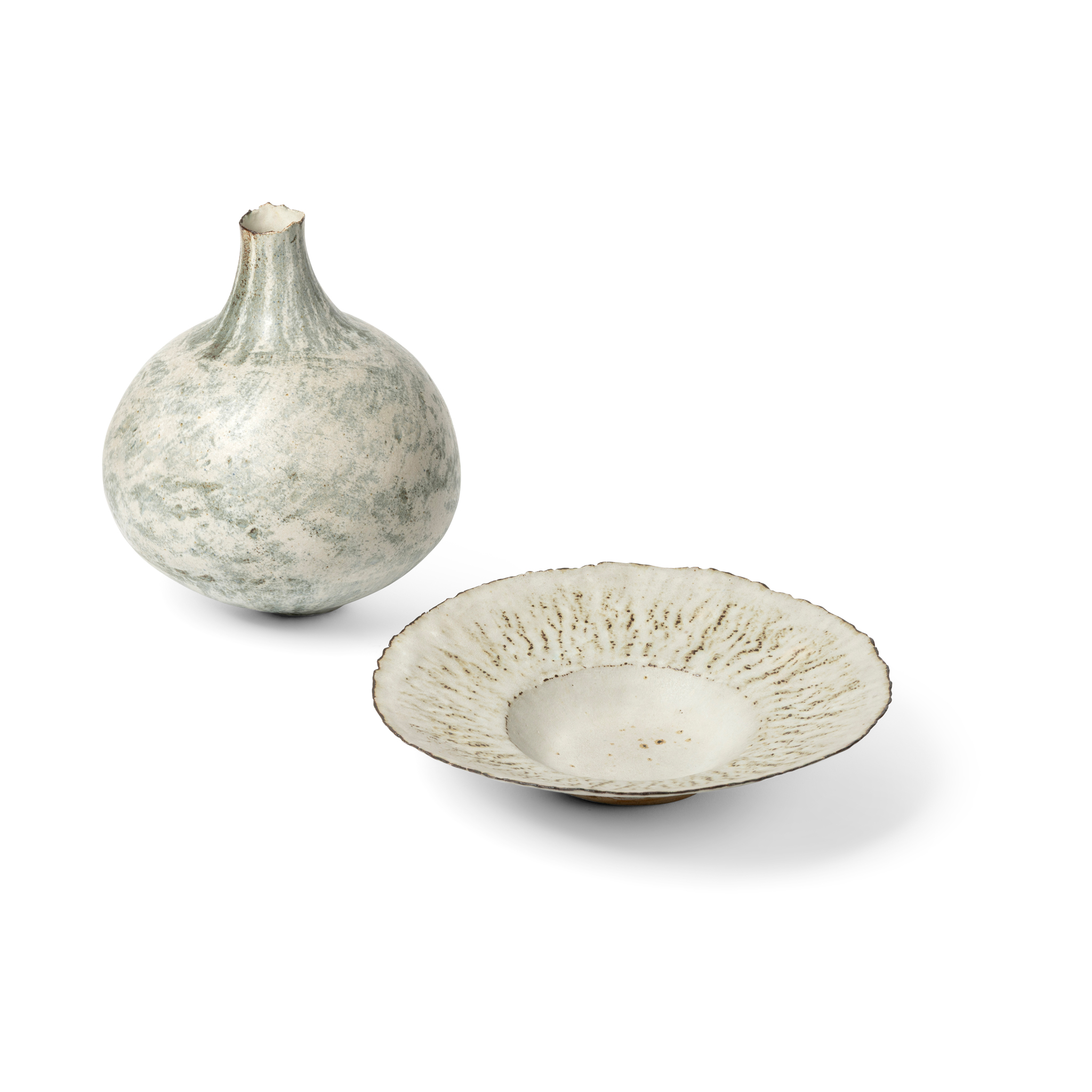 vase: 26cm high, 21.5cm wide (10 ¼in high, 8 ½in wide); bowl: 6cm high, 29cm diameter (2 3/8in high, 11 3/8in diameter) (2)