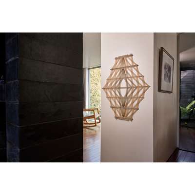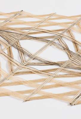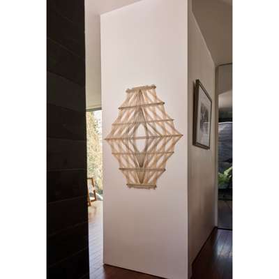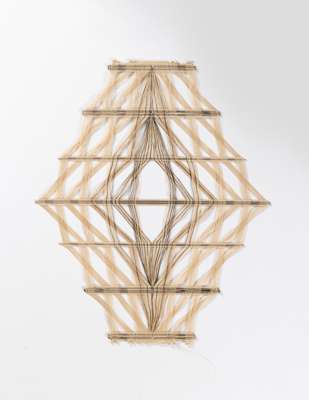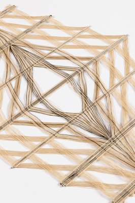signed and numbered Peter Collingwood M.137 No.6 (to metal plate to reverse), black and natural linen with steel supports