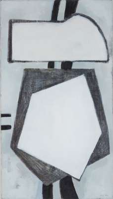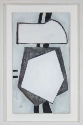 initialled and dated (lower right), further signed, dated and inscribed BLACK + WHITE 1954 / 45 GNS / W Barns Graham to Artist's label (to reverse), oil and pastel on canvas