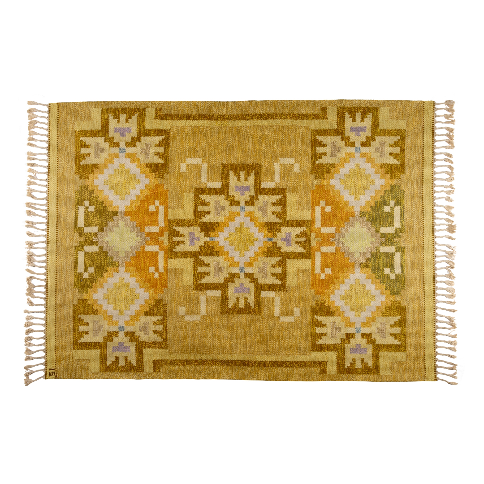 initialled in the weave (lower left), artist's label (to reverse), wool
