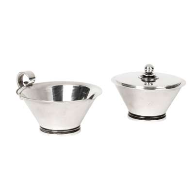'PYRAMID' MILK JUG AND SUGAR BOWL & COVER