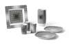 vase: 24cm high, 11cm wide (9 ½in high, 4 3/8in wide); beakers: 11cm high (4 3/8in high); medium plate: 24cm x 24cm (9 ½in x 9 ½in); large plate: 30.5cm x 30.5cm (12in x 12in) (7)