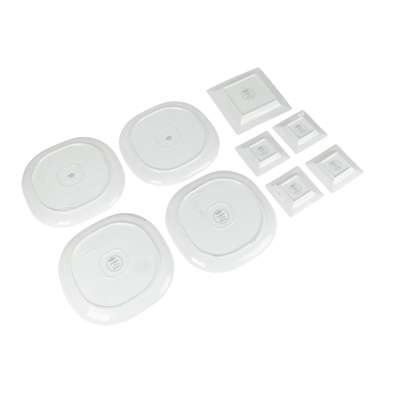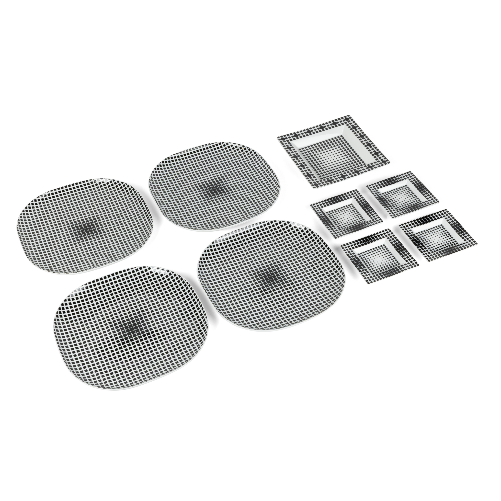4 LARGE CIRCULAR PLATES, 1 MEDIUM SQUARE PLATE, 4 SMALL SQUARE PLATES