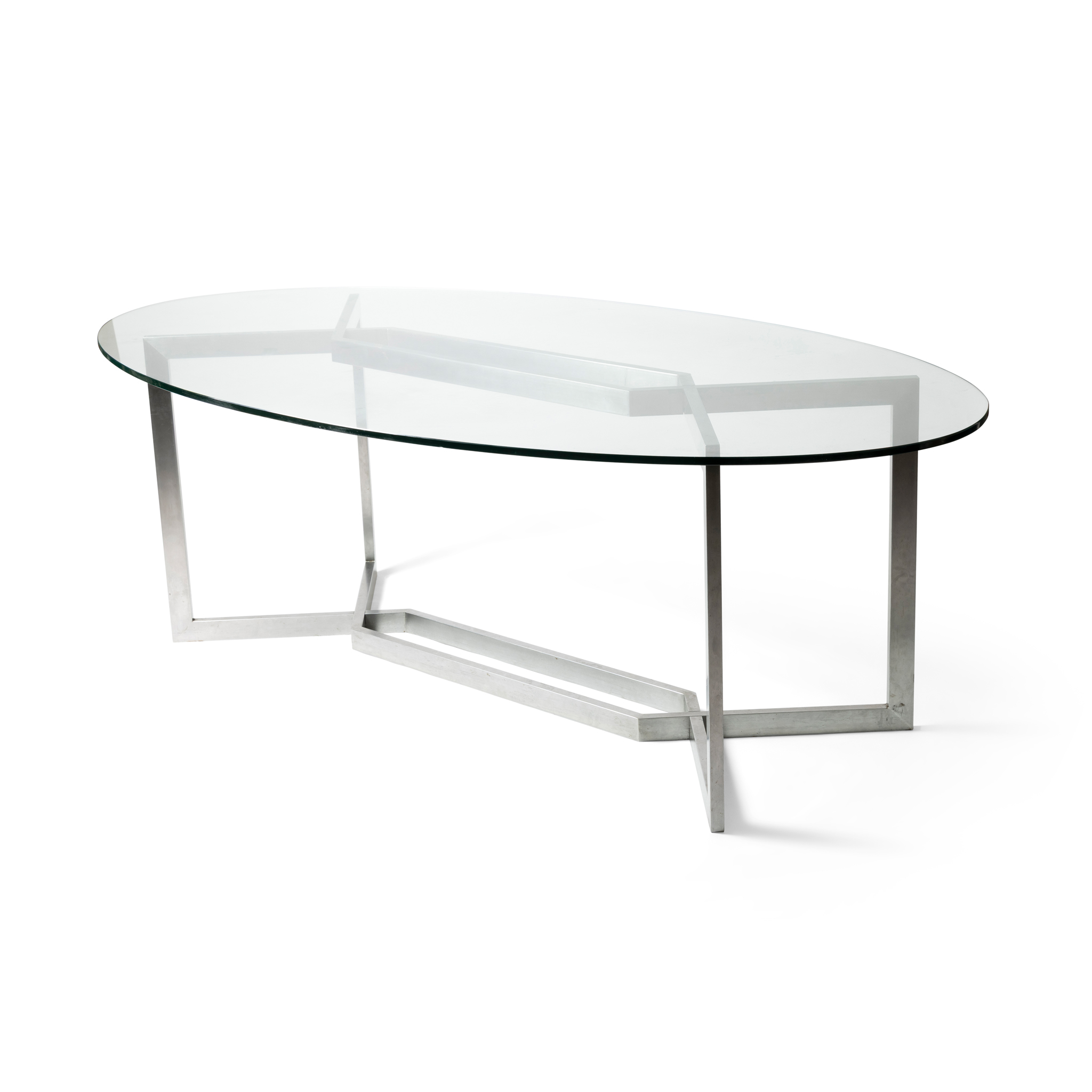 72cm high (28 3/8in high); glass top: 230cm x 115cm (90 ½in x 45 ¼in)