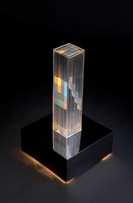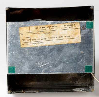signed and numbered 11/100 to label (to base), and with Galerie Withofs applied label (to base), plexiglas light column with electrical system on a stainless steel base