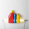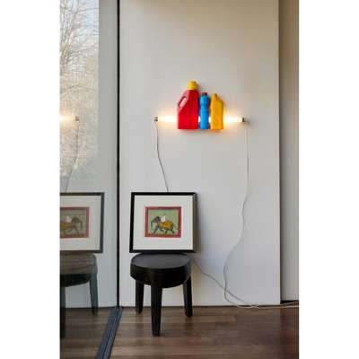 signed, dated and titled on each bottle, found plastic bottles, fluorescent light tube and transformer