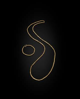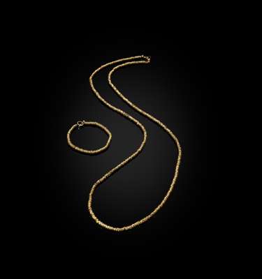 Necklace: 46cm long (18 1/8in), internal width of bracelet: 5cm (2in) (2); gross weight: 88.2 grams