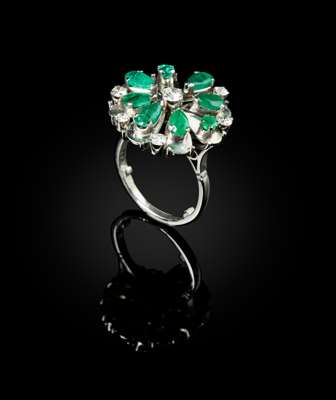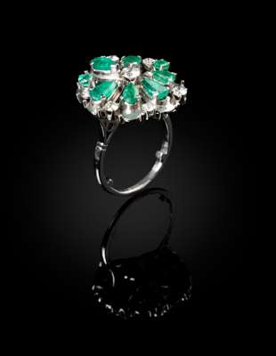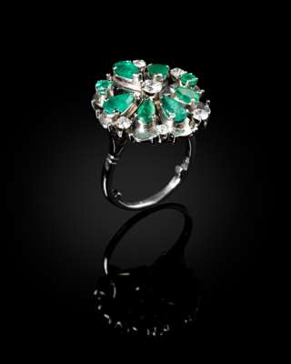 EMERALD, DIAMOND AND PLATINUM RING